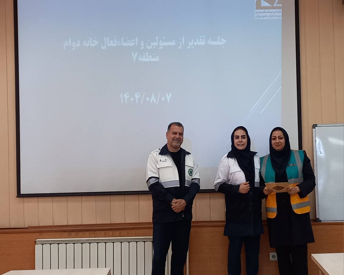به گزارش اداره مدیریت بحران و پدافند غیرعامل منطقه 7، صادق بیگی، رئیس این اداره گفت: در این نشست از زحمات دوامیان منطقه که در زمینه‌های مختلف از جمله ارتقای آگاهی عمومی، آموزش‌های امدادی و ترویج فرهنگ آمادگی در برابر بحران‌ها تلاش کرده‌اند، و همچنین به‌صورت ویژه از مشارکت مؤثر دوامیان در اجرای "طرح جهادی حامی" و حمایت از شهروندان آسیب‌دیده از جنگ تحمیلی ۲، تقدیر و قدردانی به‌عمل آمد.